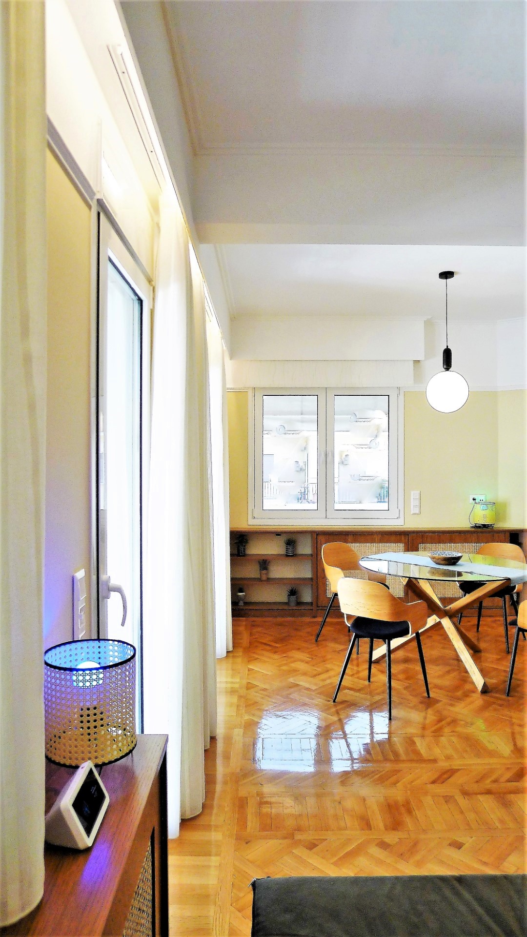 Welcome to this charming and modern one-bedroom apartment, located on the sixth floor of a well-maintained building in the lively neighborhood of Exarcheia. Step outside, and you’ll find yourself just seconds away from the city’s most vibrant cafes, eclectic shops, and cultural attractions. Inside, the apartment is a smart home equipped with Amazon Alexa, designed …